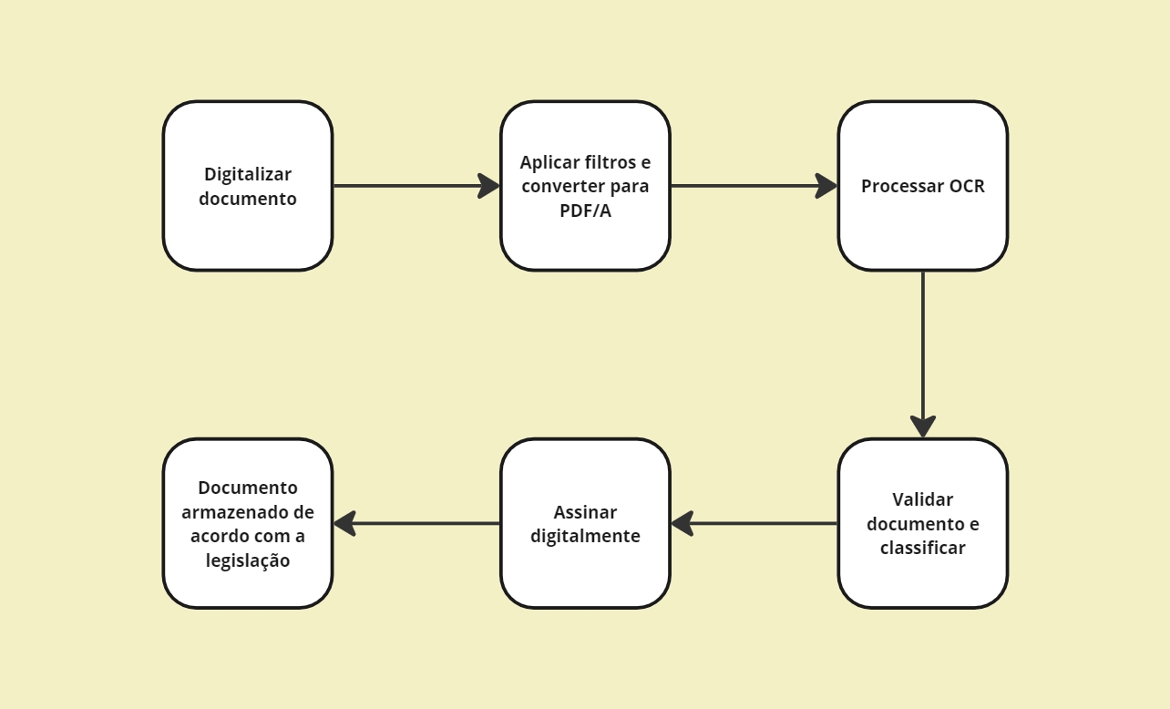 Assim, o desenho abaixo, traz a sequência das etapas que são necessárias para cada documento que irá fazer parte do processo de digitalização.