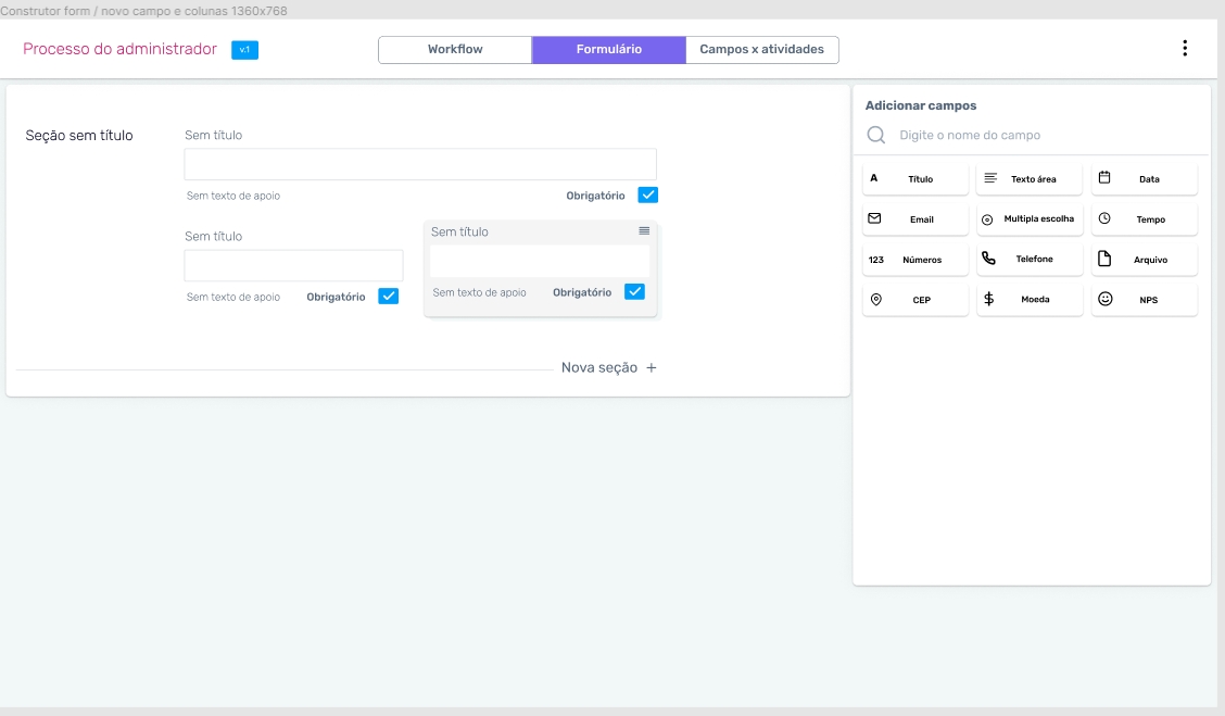 A previsão para disponibilização do Novo Construtor de Formulários é para o primeiro trimestre de 2023. A previsão para o novo módulo de regras de campos será publicada em breve.