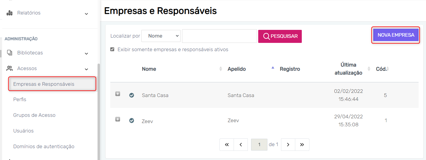 A Empresa determina a organização responsável pelo uso da ferramenta e uma biblioteca deve ser associada exclusivamente a uma empresa.