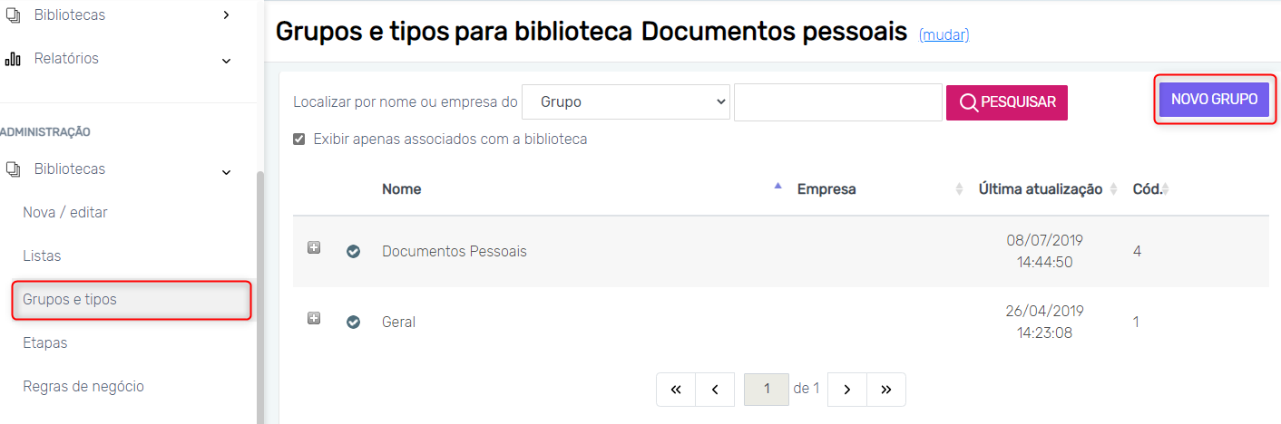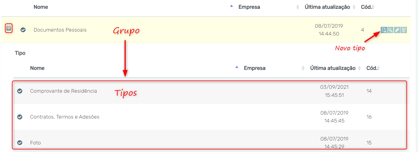 Como criar grupos e tipos de documento
