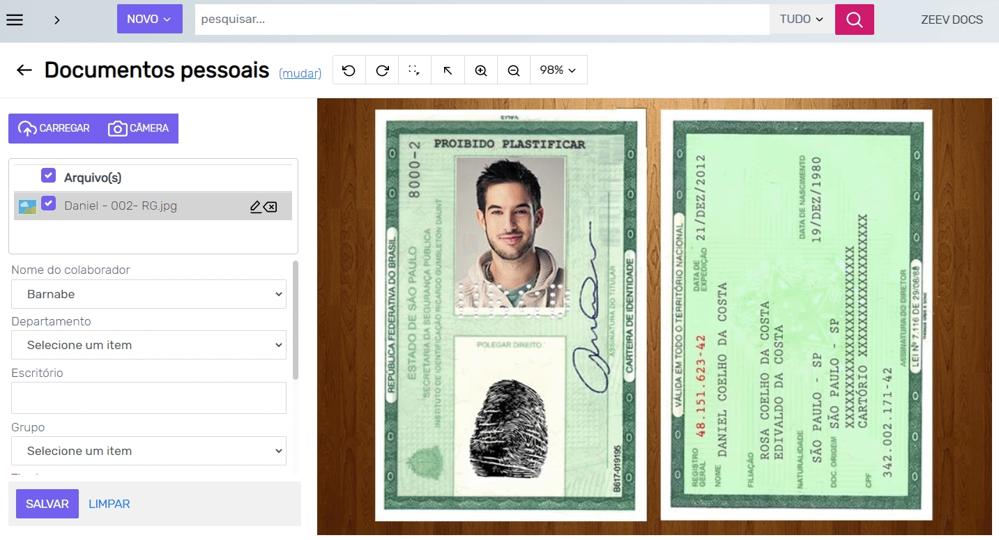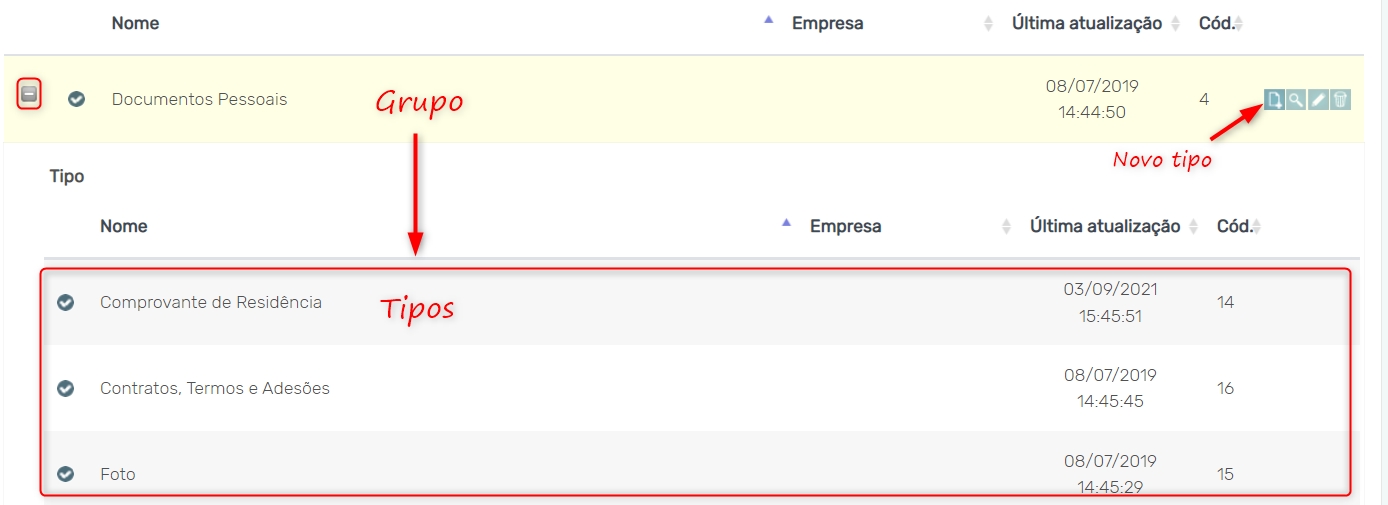 Já o Tipo de documento é o tipo documental que pertence ao Grupo, como "CPF", "RG", etc.