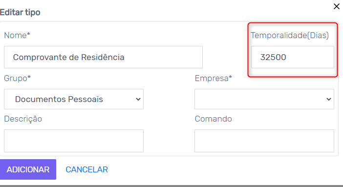 Como criar grupo e tipos de documento
