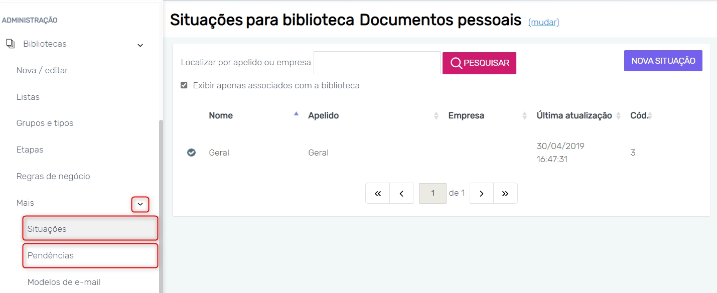 Por fim, as etapas, situações e pendências podem ser utilizadas nas regras de negócio da biblioteca para configurar o ciclo de vida do documento / workflow dos documentos.