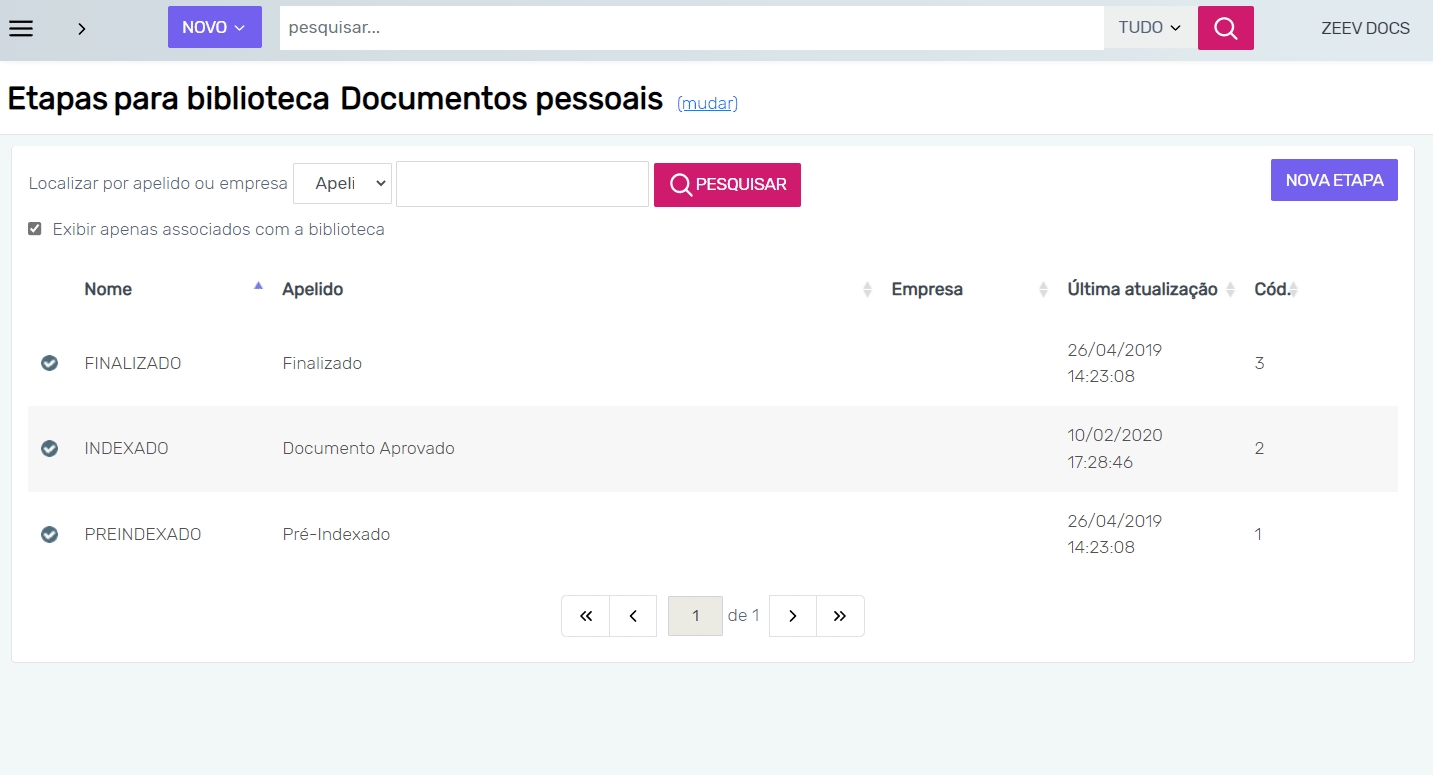 Tendo mapeado as etapas do ciclo de vida do documento, agora é preciso criá-las dentro do Zeev docs.
