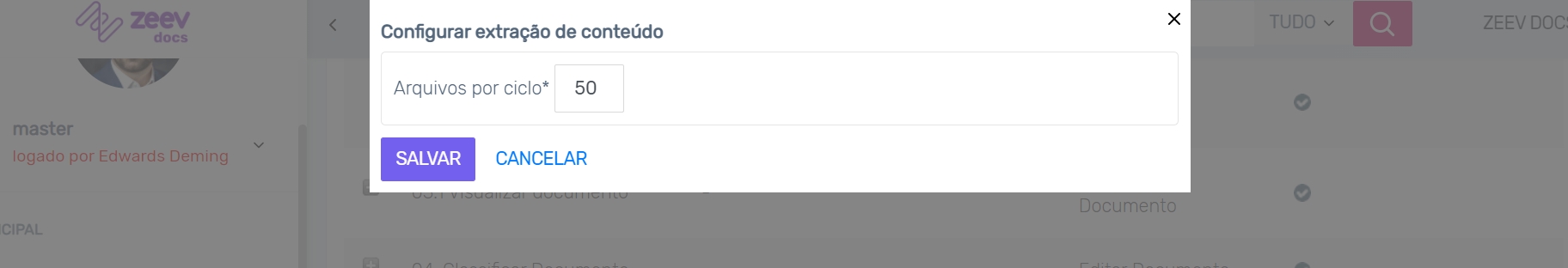 A configuração dessa regra se resume em definir a quantidade de documentos que serão processados a cada ciclo de execução do serviço: