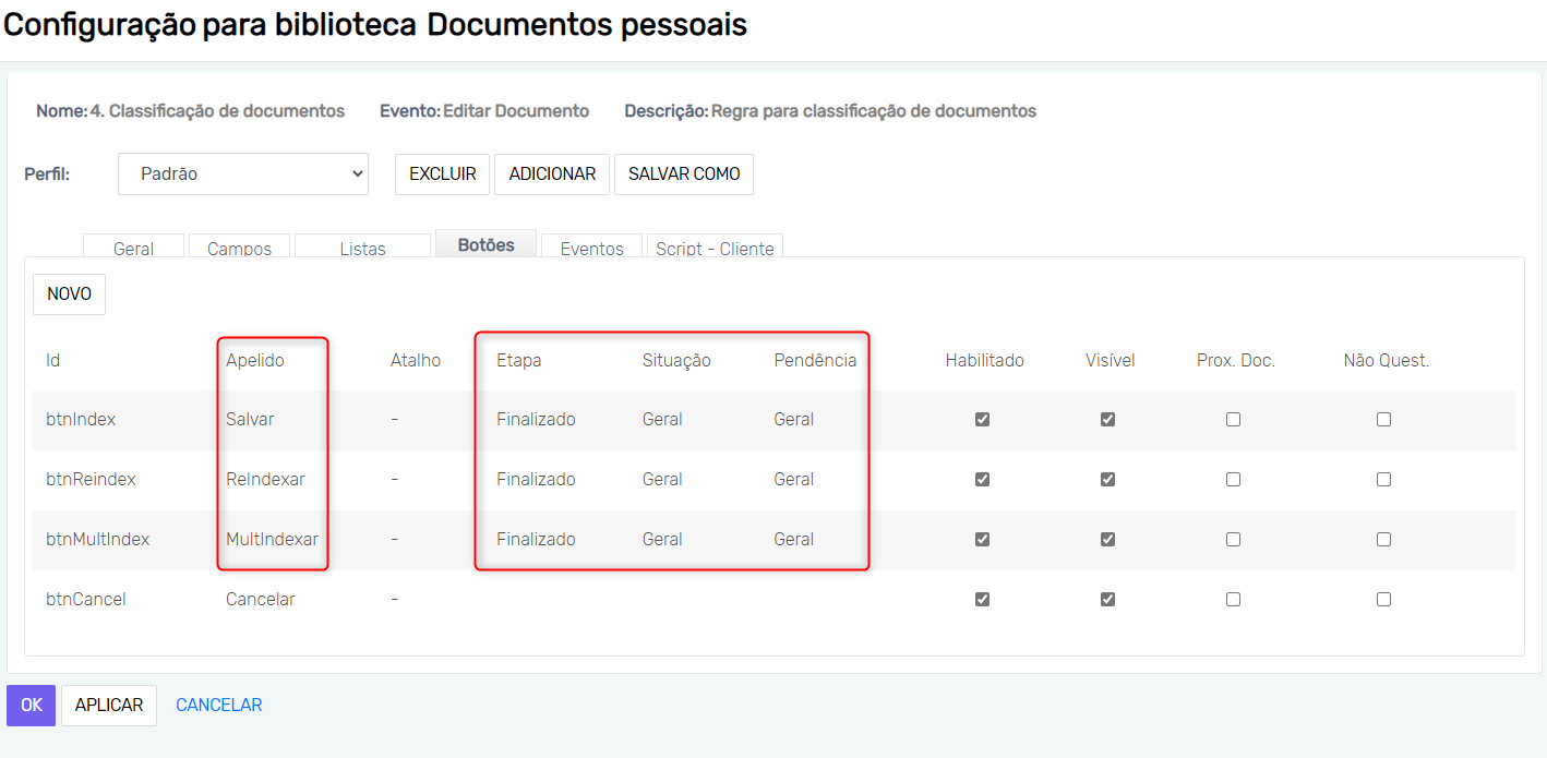 Esta regra representa a configuração do módulo Editar documentos utilizado pelos usuários finais para editar/classificar documentos.