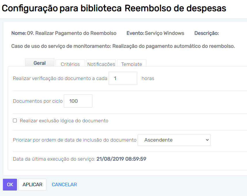 Essa regra faz parte das que rodam em background, conforme comentamos nessa página, ou seja, sua configuração não reflete a interface de algum módulo, por isso é chamada "regra do tipo Serviço".