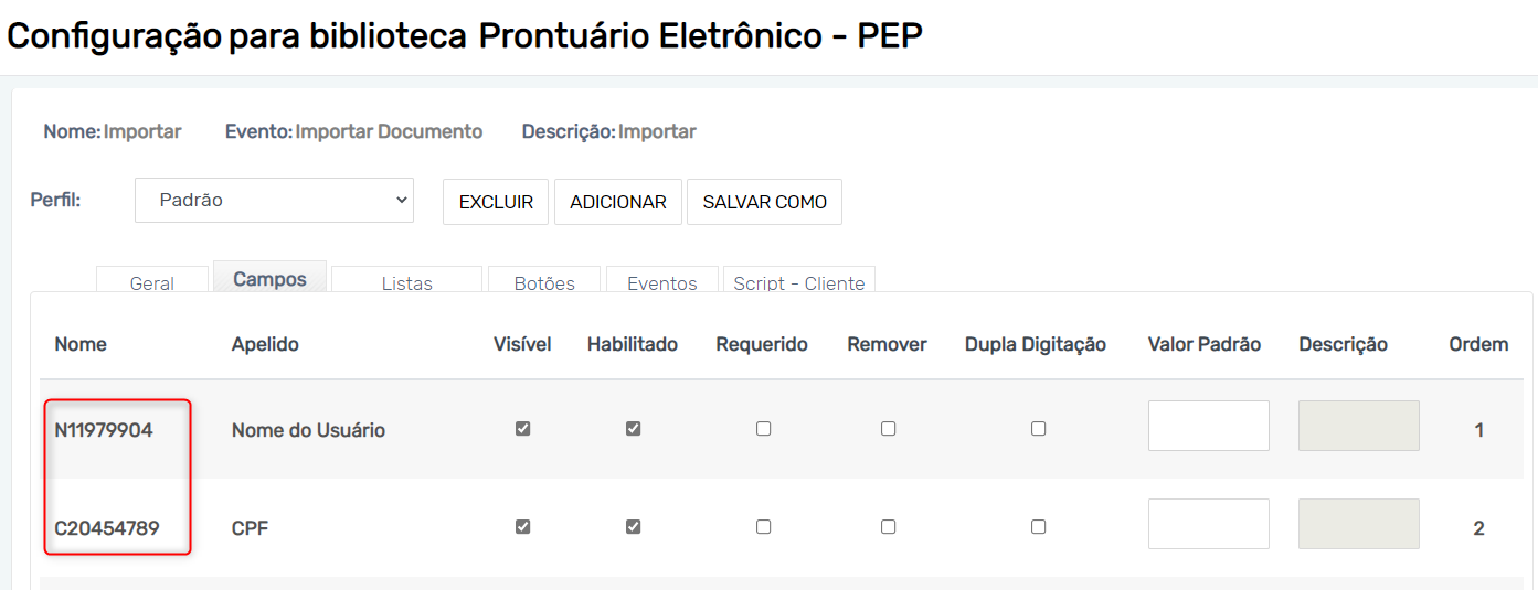 Para conseguir esse nome você deve ir até a aba Campos e verificar na coluna Nome, exemplo na imagem abaixo.