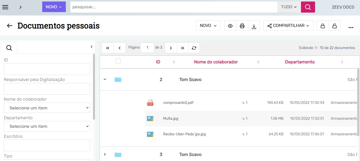 Após criar um documento no Zeev docs, é possível atualizá-lo inserindo novos arquivos, armazenados em seu computador.