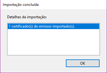 Será apresentada uma mensagem de confirmação da importação do certificado: