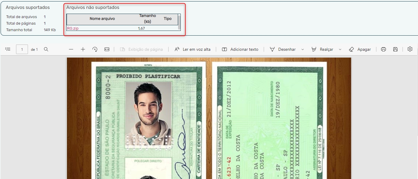 Nem todos os arquivos armazenados nas bibliotecas poderão ser impressos. Quando isso ocorre, será exibido no modal de arquivos preparados para impressão uma listagem chamada "Arquivos não suportados" com a listagem dos que não podem ser impressos.