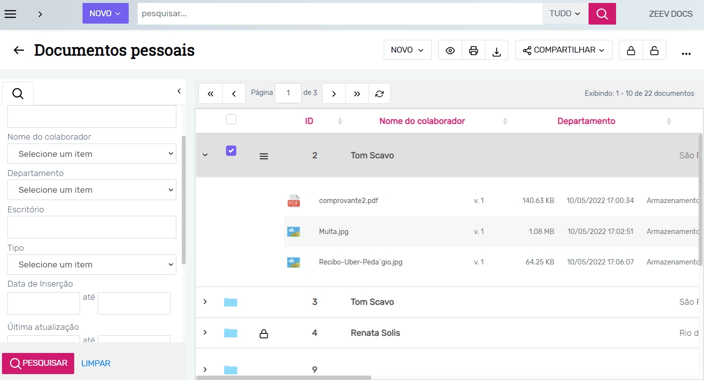 O Zeev docs permite que seja realizada a impressão dos documentos armazenados em uma biblioteca.
