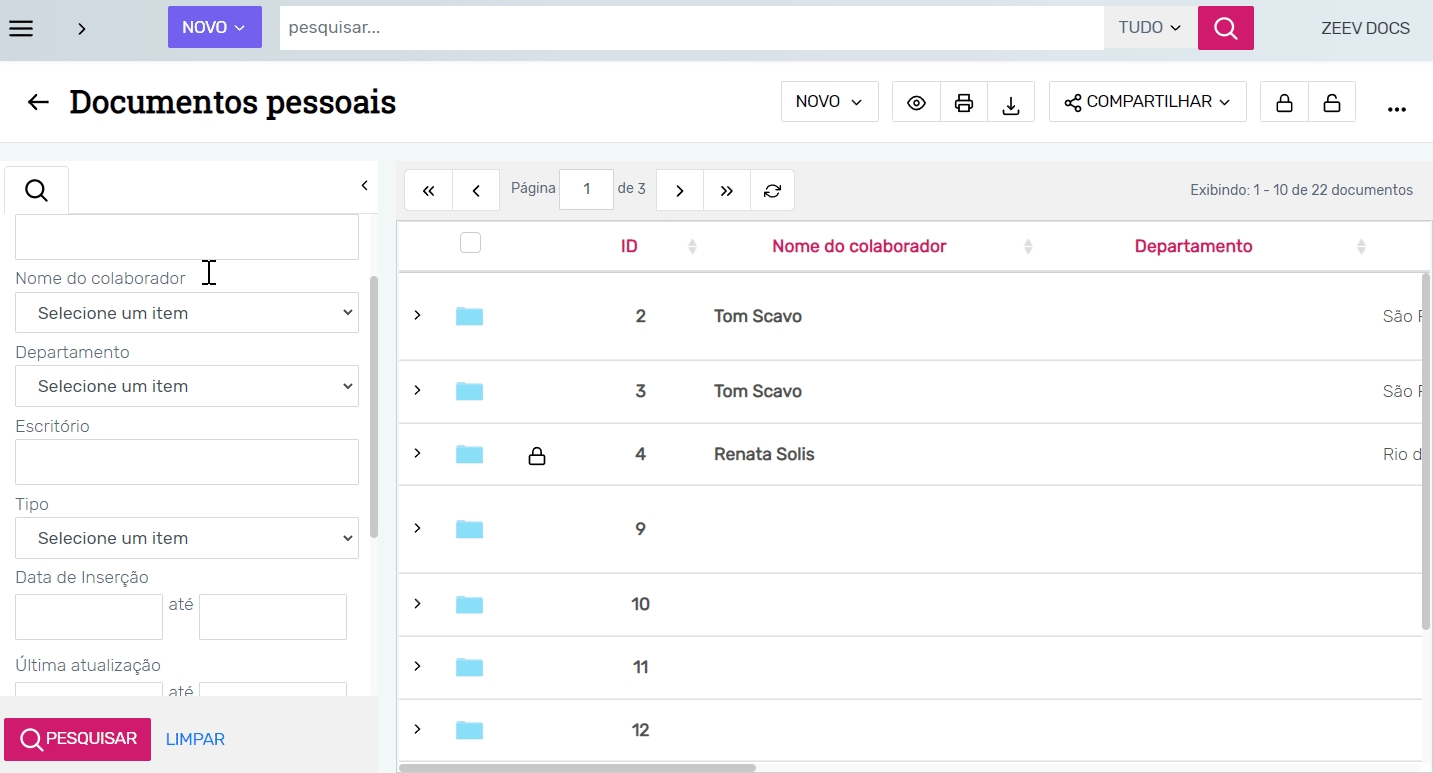 Após acessar uma biblioteca a listagem de documentos armazenados será apresentada.
