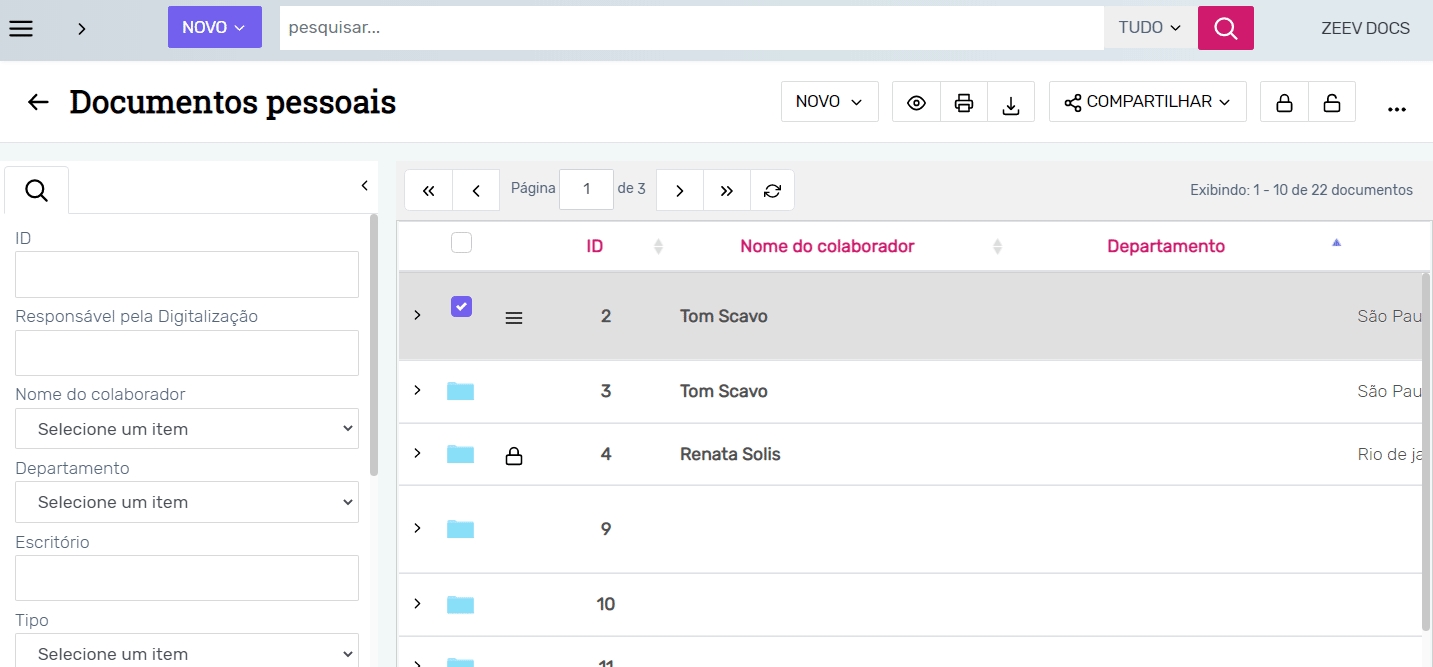 Para realizar o ad hoc de diversos documentos, selecione-os através da coluna de checkbox e realize o mesmo procedimento supracitado.