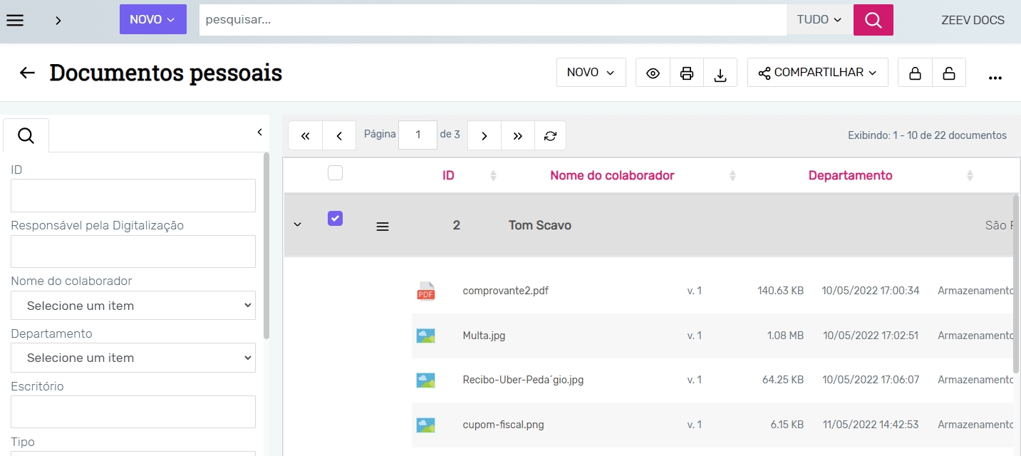 Nesta ação, você substitui todos os arquivos do documento pelo(s) novo(s), e o Zeev docs armazena os arquivos substituídos, além de permitir que você os visualize.