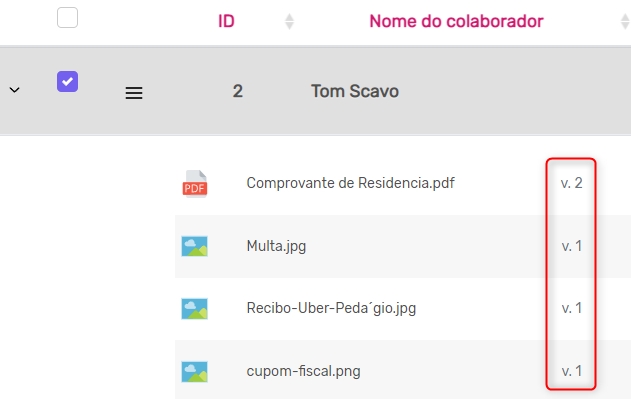 Será possível versionar todos os arquivos que compõem o documento ou versionar um arquivo específico do documento.