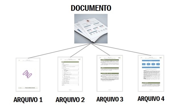 Fazendo uma analogia, podemos comparar o documento à um contrato: as páginas individualmente seriam os meus arquivos, enquanto todas as páginas juntas compõem um documento.