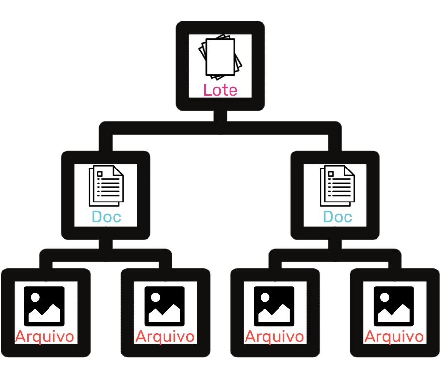 Lotes: podem conter um ou mais documentos agrupados por um determinado tema ou conteúdo, como um dossiê de contratos, por exemplo. Cada dossiê corresponde à um lote, porque possuirá diversos tipos de contratos (documentos) e estes, por fim, possuirão diversas páginas (arquivos).