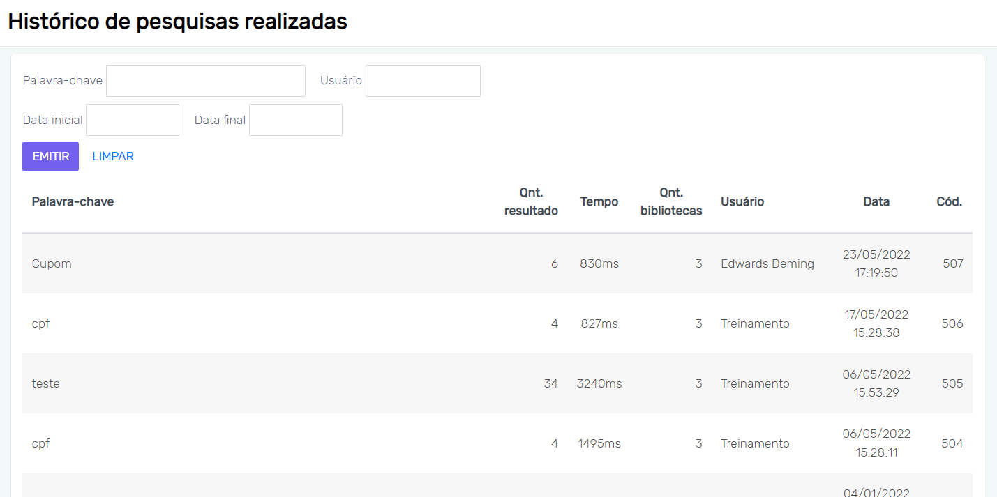 Monitore e acompanhe as pesquisas globais e tempos de execuções realizadas no Zeev docs.