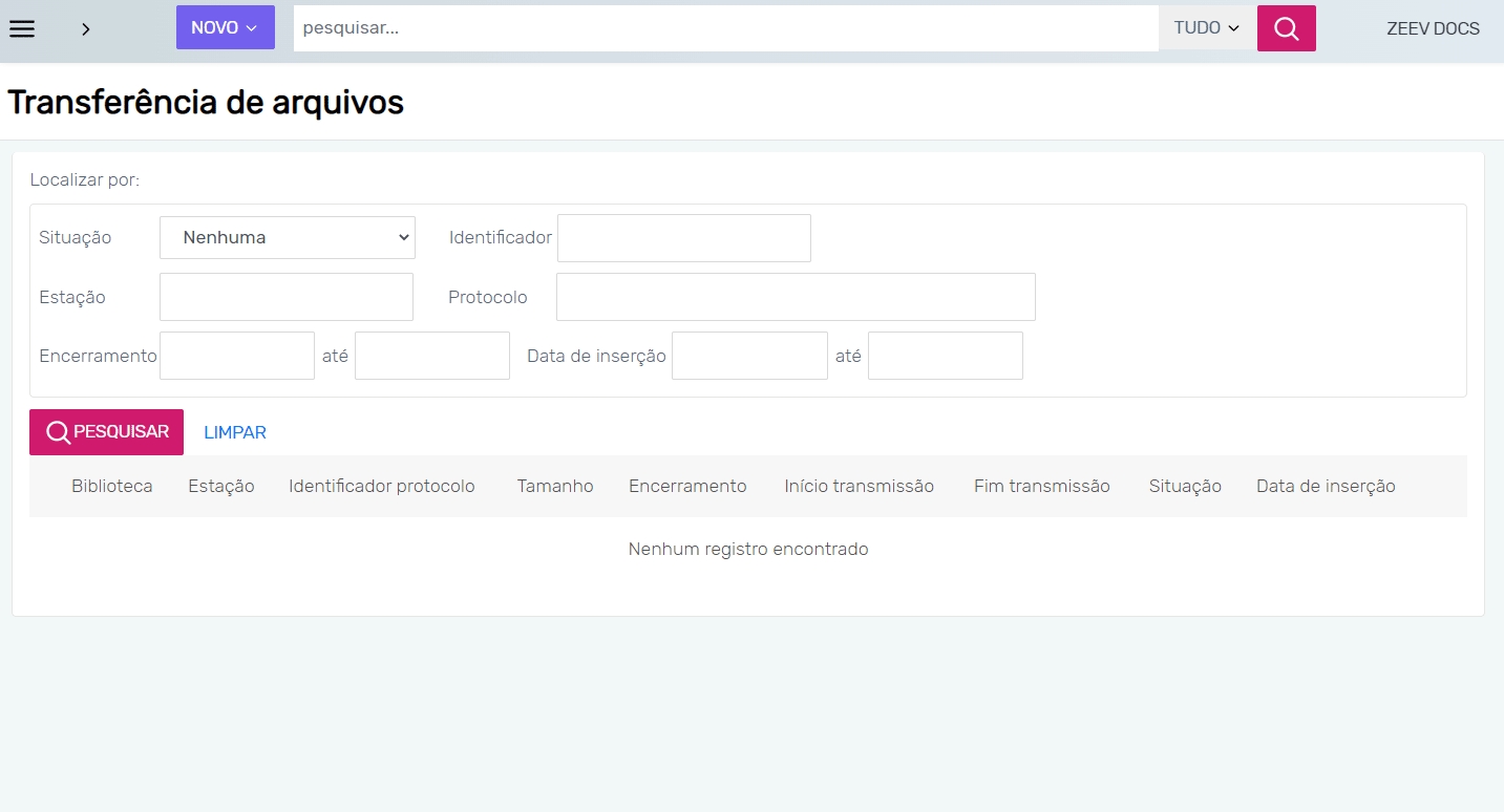 Neste módulo é possível verificar todos os uploads de arquivos para o Zeev docs.